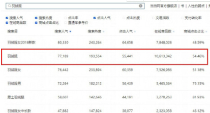 当然,以上略主观,我们再通过数据来看,打开生意参谋搜索词分析,输入“羽绒服”,