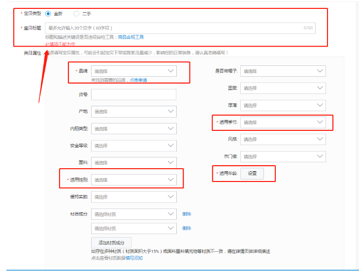 ③其他的属性按照你产品的风格去设置,例如季节,如果你卖的是冬装,你的季节随便填写的秋装,那么买家在搜冬装的时候可能就搜不到你,反而搜秋天能够给搜到你产品。
