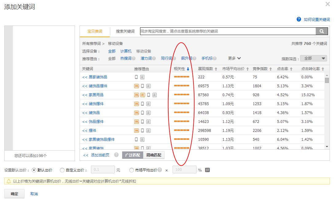 所以关键词的相关性就是我们要先注意的因素,这也是强调的,因为相关性是直接影响到关键词的点击率和转化。